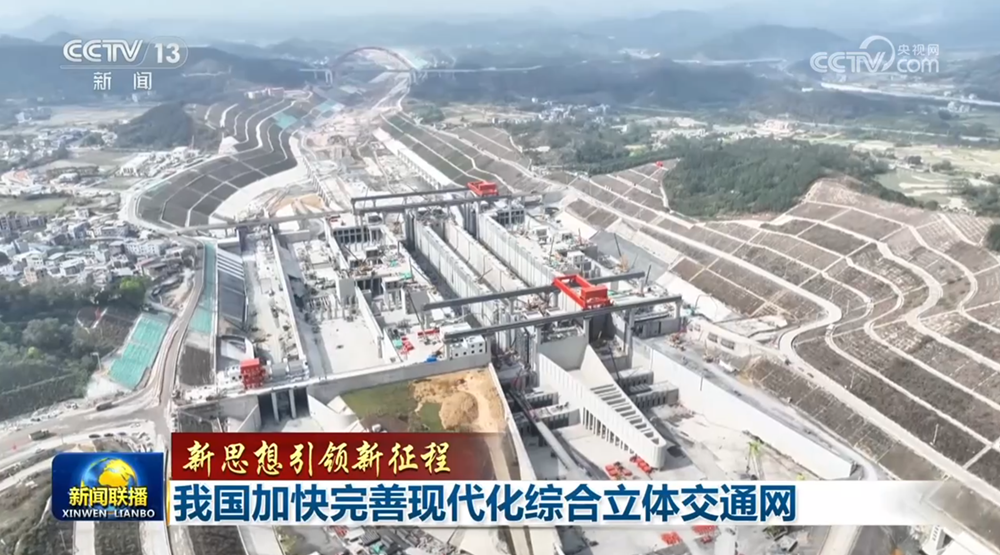 在广西,西部陆海新通道骨干工程——平陆运河工程正加紧推进。企石枢纽、青年枢纽在进行无水调试工作,施工人员正对船闸的液压、机电等多系统进行多轮调试,预计平陆运河将于今年9月全线通航。