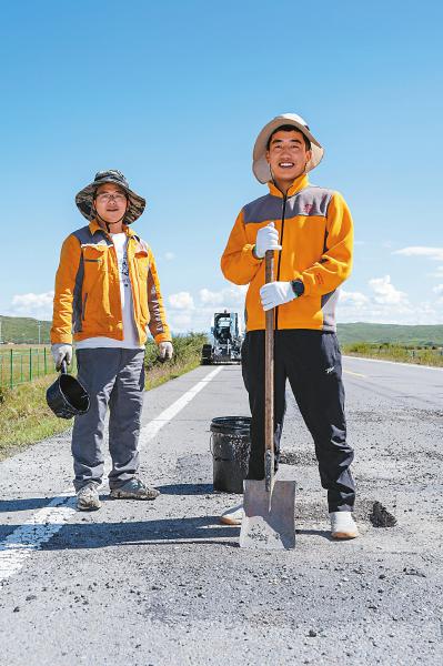 尼玛木滚,黝黑的脸庞是他青春的印记。夏日的阳光炽热,国道317线上,一位“00后”小伙正挥汗如雨修补路面。尼玛木滚和他的同事们,负责阿坝州红原县刷经寺镇附近约40公里路段的养护工作。尽管他只工作了两年,但日复一日的户外劳动,已让他的皮肤被晒成了古铜色。面对记者的镜头,他笑着说:“我们要保证道路畅通无阻,这点晒不算什么。”
