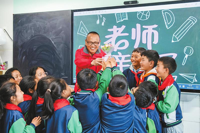 9月10日,2023年到阿坝州红原县城关小学支教的绵阳市盐亭县高渠小学张恩君老师收到了孩子们的教师节祝福。他克服各种困难,为高原孩子带去知识。何海洋 摄