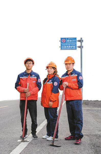 8月19日,甘孜州炉霍县炉霍公路分局三岔河养护管理站,“90后”养护员袁明建(左)、尼马翁姆(中)、兰勋常年驻守,保障国道317线的畅通。何海洋 摄