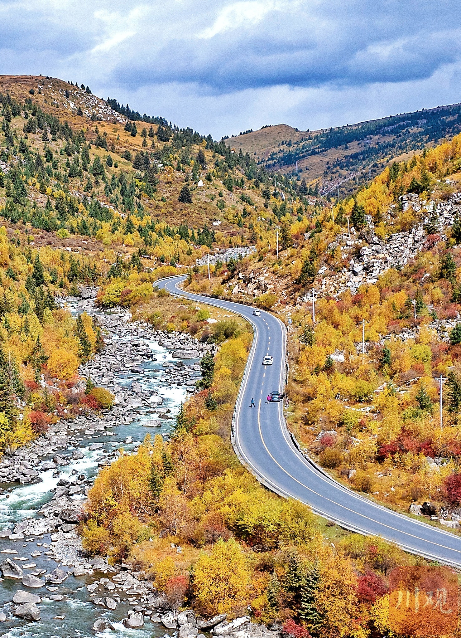 10月21日,从康定出发,盘旋而上折多山,在海拔4298米的垭口处,“康巴第一关”早已成为热门的打卡点;沿着国道线行驶,沿途是如童话般的彩林,一直伴随着你直到新都桥;上午还雪花飘飘的龙灯牧场,而车行至道孚时,就惊喜地出现了彩虹;站在高处俯瞰卡莎湖,湖水与彩林在阳光的照耀下会呈现出五彩斑斓的景象;鲜水河深处的层林尽染,也仿佛已经做好了迎接仙鹤翩然而至的准备。