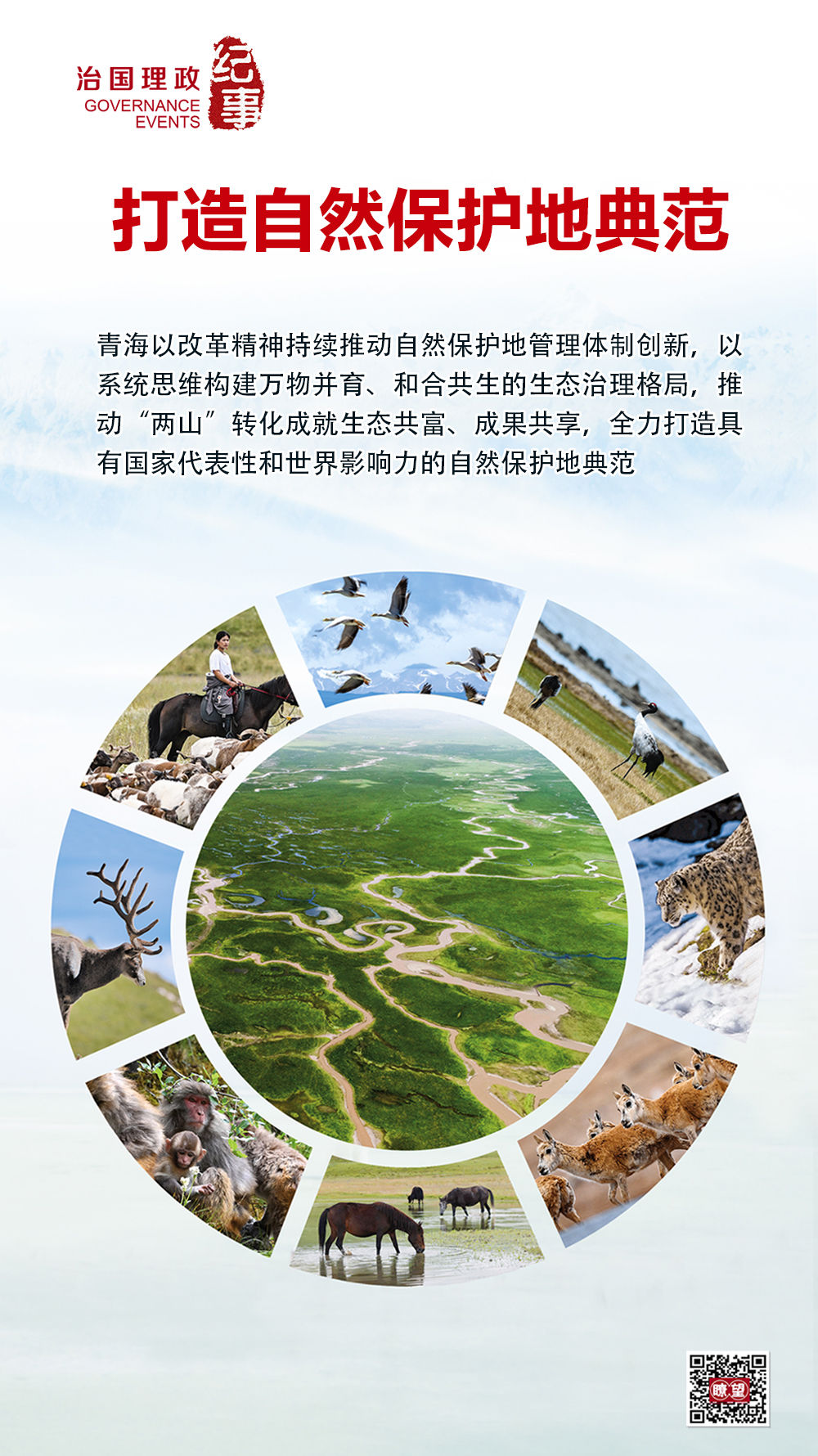 《青海省贯彻落实〈关于建立以国家公园为主体的自然保护地体系的指导意见〉的实施方案》《青海省推进以国家公园为主体的自然保护地体系现代化建设总体规划(2023—2035年)》《青海省自然保护地优化整合方案》……青海出台系列文件做出部署,以改革精神持续推动自然保护地管理体制创新,以系统思维构建万物并育、和合共生的生态治理格局,推动“两山”转化成就生态共富、成果共享,全力打造具有国家代表性和世界影响力的自然保护地典范。