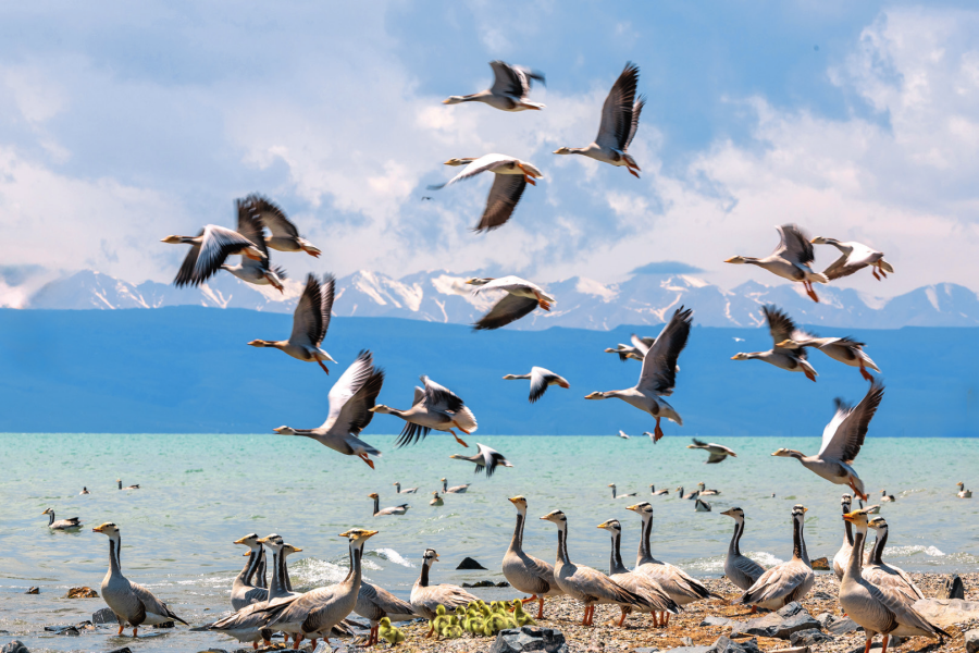 在青海湖拍摄的斑头雁(2024年5月24日摄)。新华社发 杨涛 摄