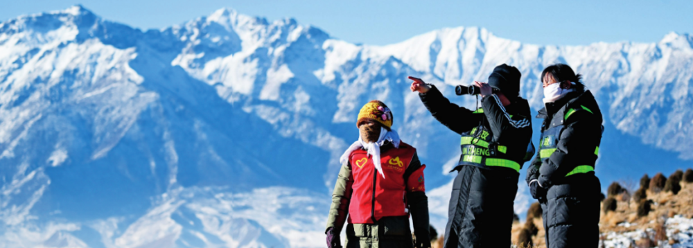 青海门源县境内的祁连山国家公园老虎沟管护站的生态管护员在巡护祁连山(2025年1月28日摄)。张龙 摄