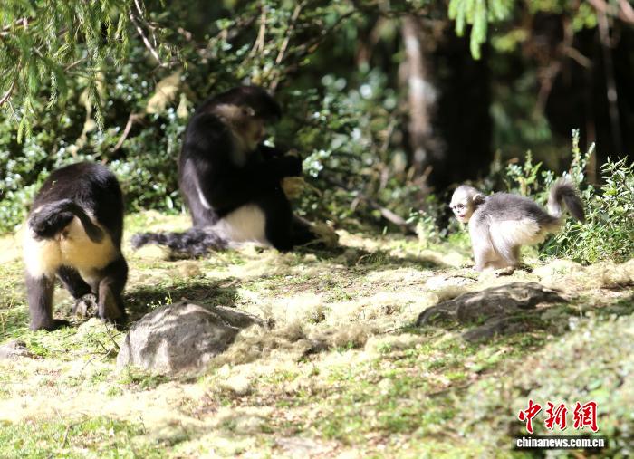10月6日,滇金丝猴国家公园内一只滇金丝猴在进食。黄兴鸿 摄