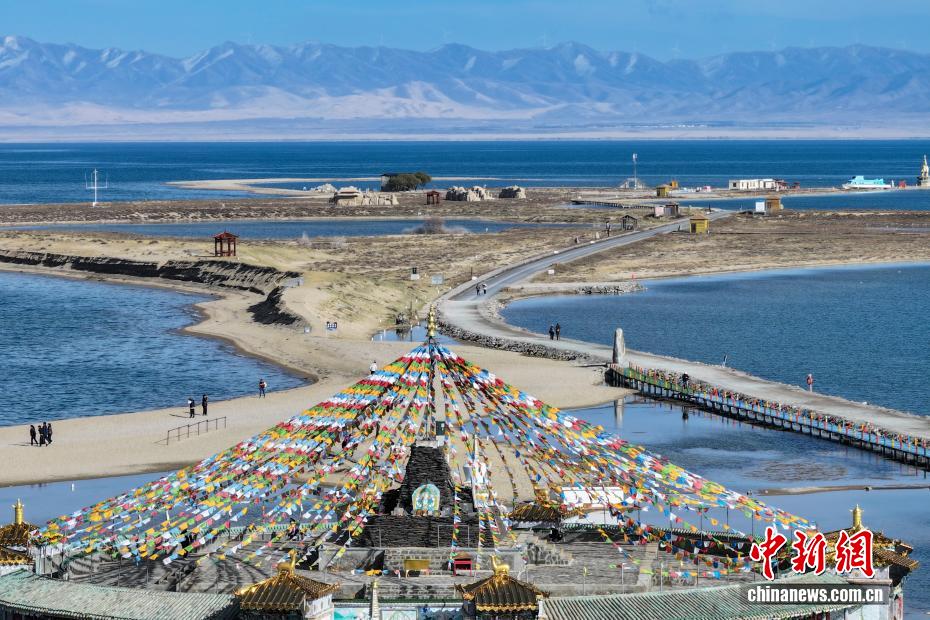 10月22日,航拍青海省海南藏族自治州共和县青海湖秋日景色。(无人机照片)中新社记者 马铭言 摄
