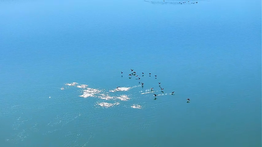 近日,青海德令哈尕海国家湿地公园,湖面波光粼粼,芦苇荡随风摇曳,成群大天鹅、斑头雁在水中嬉戏觅食,一幅“水美、草绿、鸟欢”的生态画卷正徐徐展开。