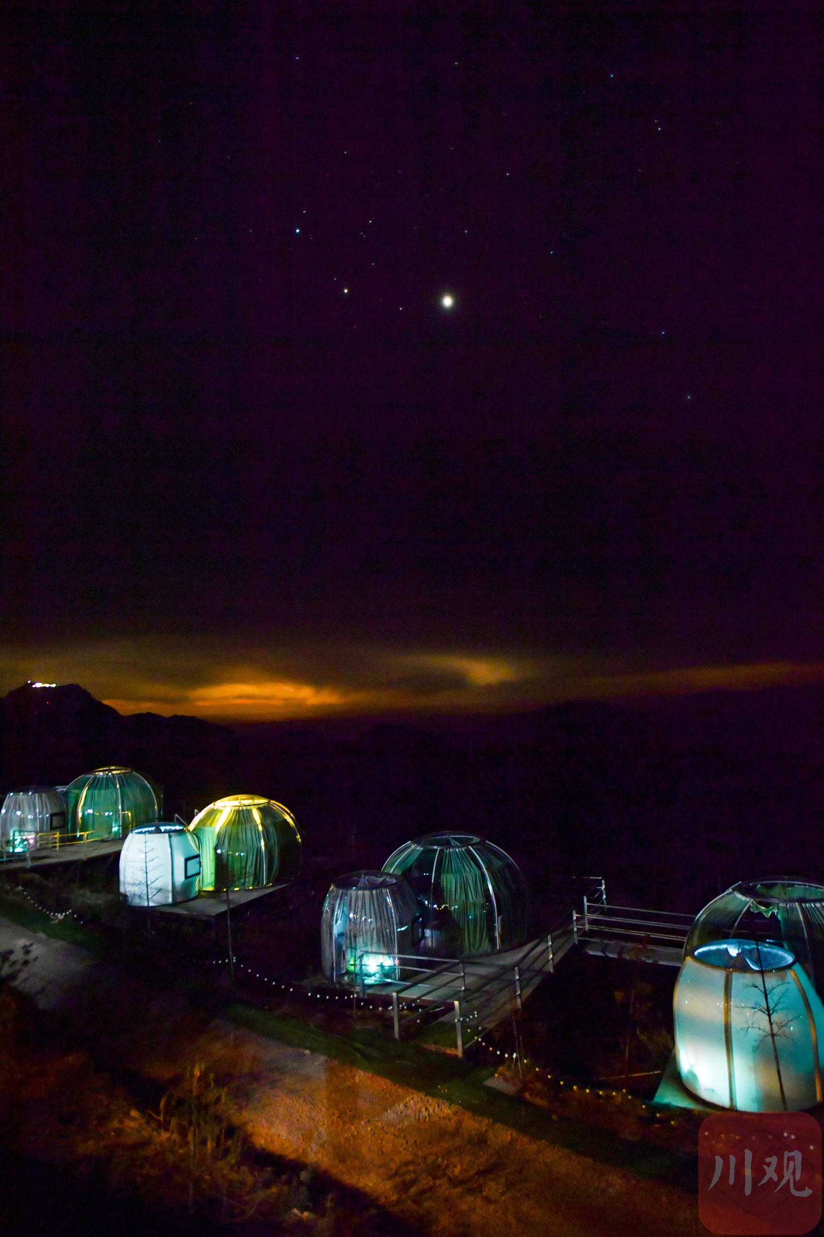 2025年12月17日晚,游客在四川省甘孜藏族自治州泸定县兴隆镇化林村海拔2080多米的星空房娱乐。李向雨 摄