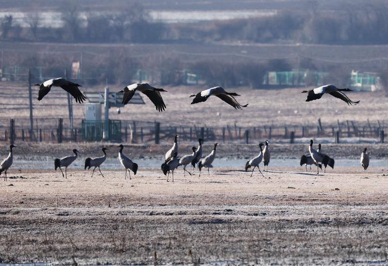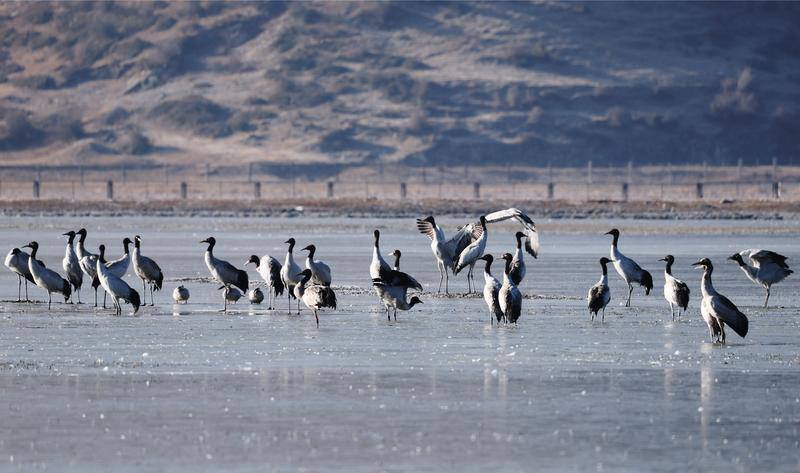 在此越冬的黑颈鹤达573只。