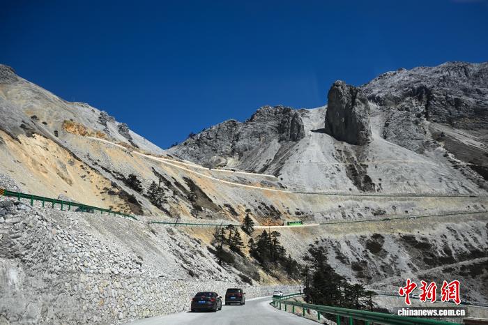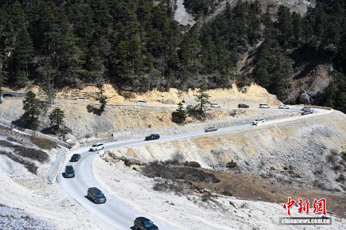 3月11日,参与自驾的车辆穿梭在高山峡谷间。中新社记者 李嘉娴 摄