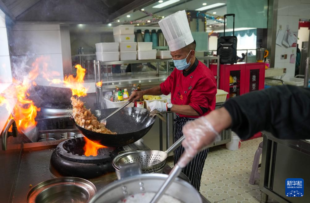 4月25日,那曲市色尼区老年人日间照料中心的厨师在制作午餐。新华社记者 晋美多吉 摄