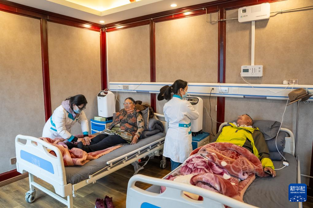 4月25日,老人们在那曲市色尼区老年人日间照料中心做理疗。新华社记者 丁增尼达 摄