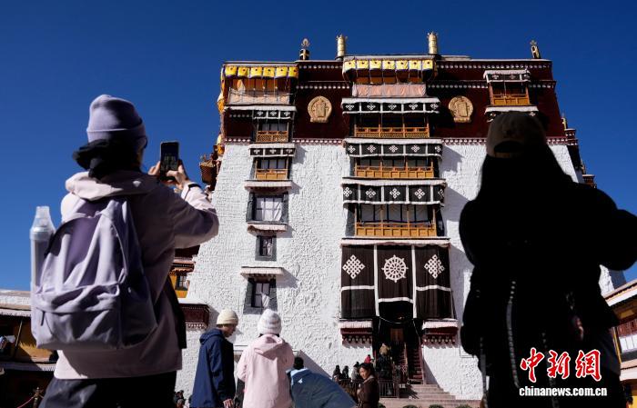 1月7日,游客在布达拉宫参观游览。当前正值第八轮“冬游西藏”市场促进活动开展期间,西藏推出包括布达拉宫在内的多家景区免门票优惠,吸引游客前来参观。中新社记者 李林 摄