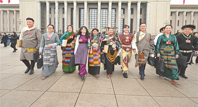 12日下午,西藏全国人大代表与全国各地的代表一同走进人民大会堂,出席十四届全国人大四次会议闭幕会。