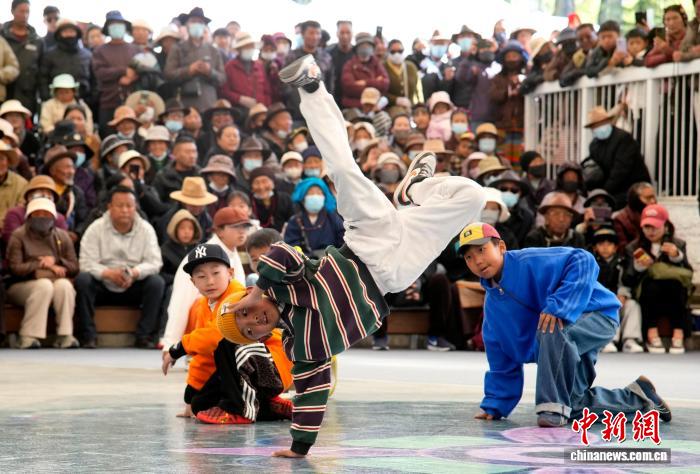 图为第三届拉萨春日书会开幕活动上的少儿街舞演出。李林 摄