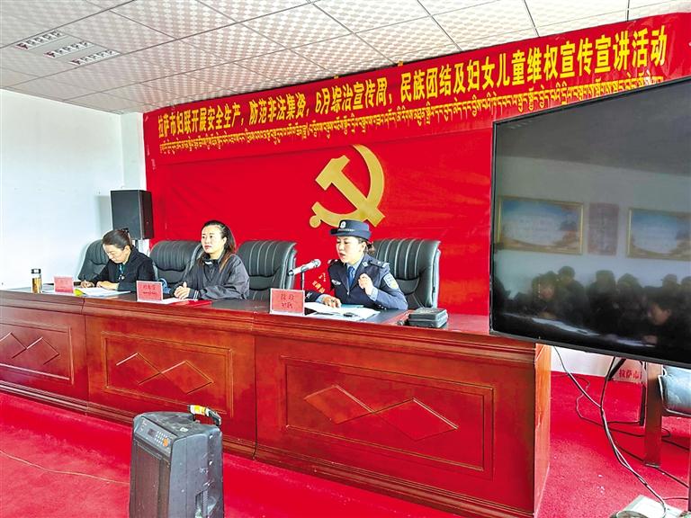 东嘎街道派出所联手拉萨市妇联在达孜区开展普法宣讲活动。
