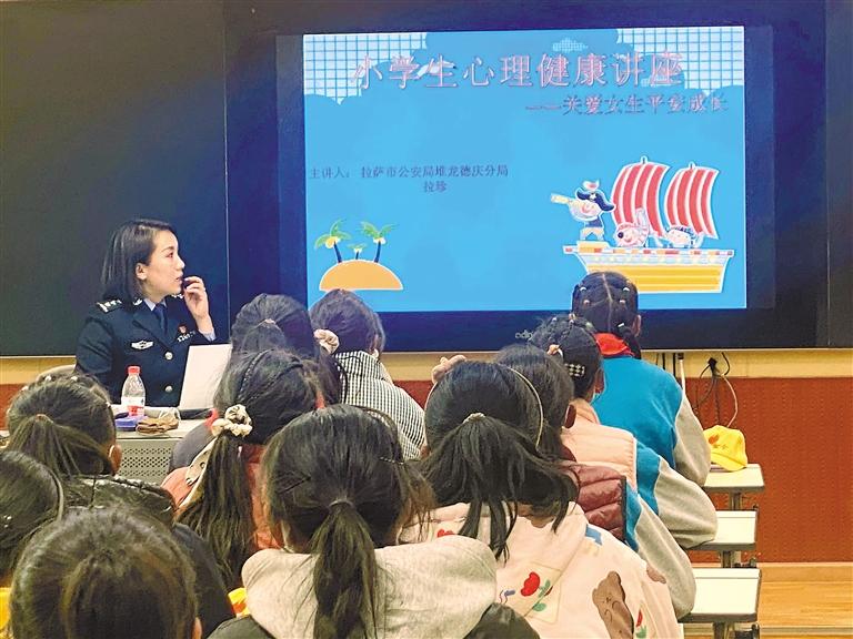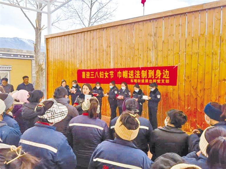 东嘎街道派出所全体民警不断提高妇女儿童维权业务水平,引导广大妇女儿童从思想上树立维权意识,开展普法宣传75次、心理健康讲座进校园52场,创建“零家庭暴力小区”5家、关爱困难妇女儿童家庭17户、开展心理疏导150余人次。多次派出“巾帼宣讲团”前往辖区各学校、小区、社区等单位,组织开展未成年人保护法及反家庭暴力等法律法规及心理健康知识讲座;借助“三八”妇女节、“宪法日”“国家安全日”等节点,开展妇女儿童权益保护主题宣讲。“巾帼宣讲团”受拉萨市妇女联合会及堆龙德庆区妇女联合会邀请,多次前往拉萨市各县区开展“妇女儿童维权”法律宣讲,深入群众家中,用实际行动向社会大众普及法律法规知识,尤其是维护妇女儿童权益的相关法律知识,让辖区群众感受到法律的温度。