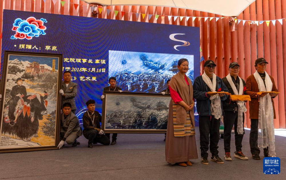 5月18日,吴雨初的友人为西藏牦牛博物馆捐赠瓷画《“亚格博”在西藏》。新华社记者 姜帆 摄