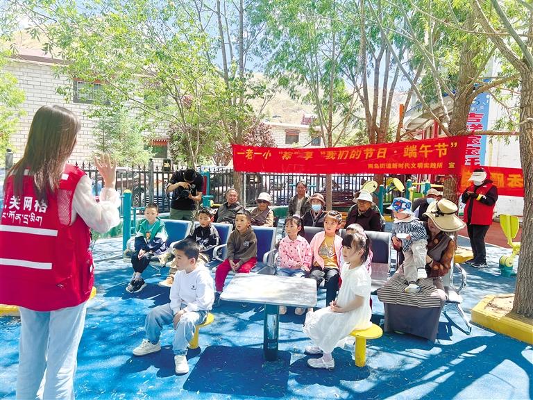 6月7日,拉萨市城关区两岛街道新时代文明实践所开展“我们的节日·端午节”活动,邀请辖区老年人和幼儿园小朋友共度端午。记者 格桑伦珠 摄
