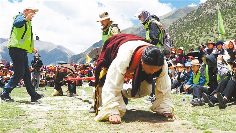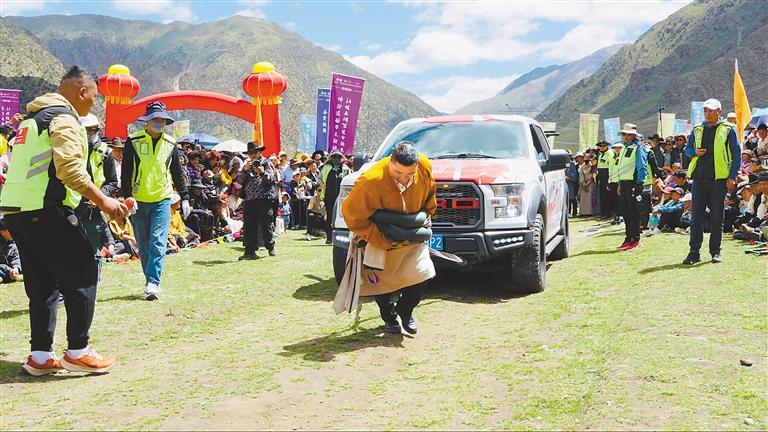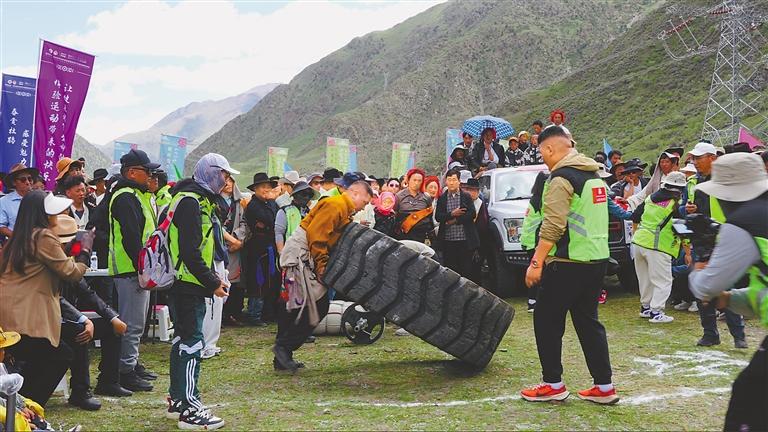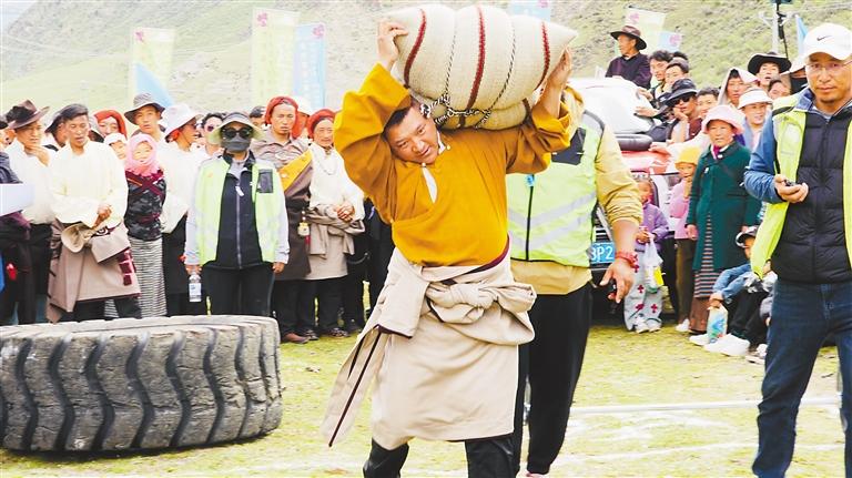 图为村民参加“大力士”比赛。