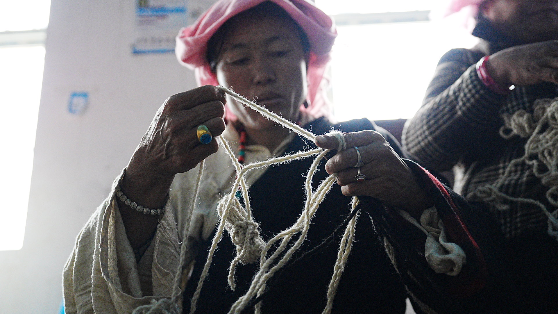 那曲市色尼区古露镇木托村手工编制合作社成立至今,一直坚守传统手工工艺,当地妇女以双手为画笔,将一根根丝线绘成一副副精美的艺术品。