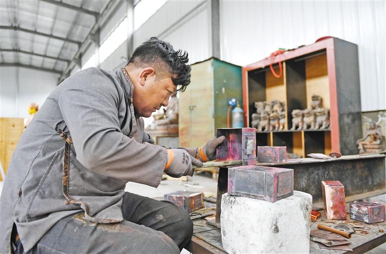 图为匠人在锻造手工艺品。记者 旦增兰泽 摄