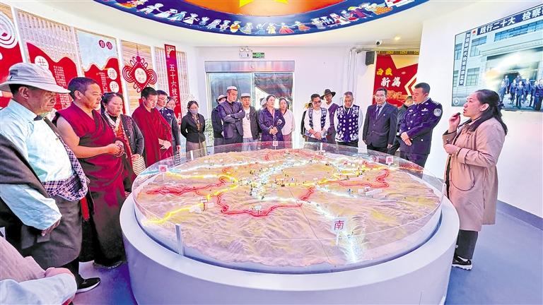 9月14日,拉孜县曲下镇以铸牢中华民族共同体意识为主线,举办首届“格桑花开石榴红·凝心铸魂新征程”运动会暨“迎中秋、庆团结”茶话会。 图为各民族群众代表参观拉孜县铸牢中华民族共同体意识教育馆。