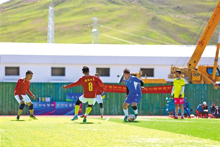 图为吉隆县“同心杯”干部职工足球比赛暨民族团结进步宣传活动月启动仪式结束后,参赛队伍在进行比赛。