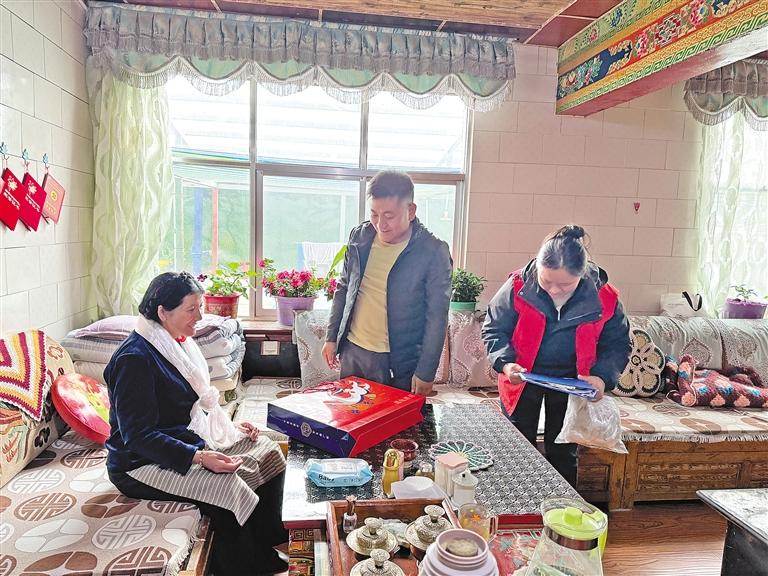 图为亚东县帕里镇工作人员在民族团结通婚家庭开展走访慰问。(图片均由记者 扎西顿珠 杨子彦 旦增嘎瓦 摄)