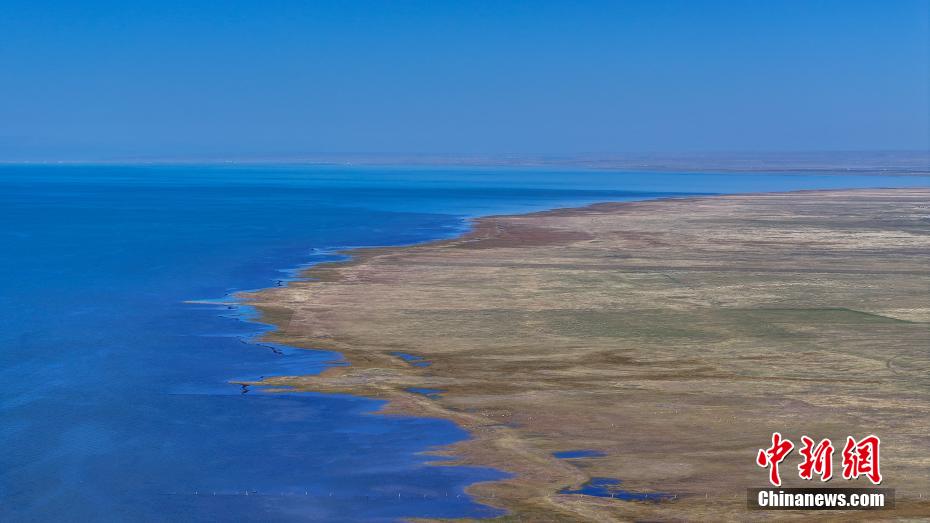 9月26日,航拍青海省海北藏族自治州刚察县仙女湾秋日风光。仙女湾位于青海湖北岸,是青海湖重要高原草甸湿地,生物多样性丰富。图为航拍青海省海北藏族自治州刚察县仙女湾。
