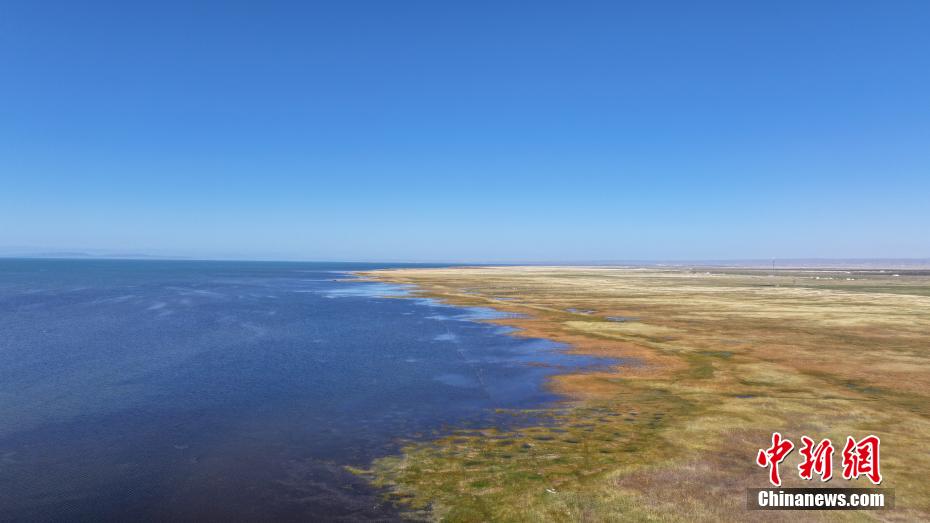 9月26日,航拍青海省海北藏族自治州刚察县仙女湾秋日风光。仙女湾位于青海湖北岸,是青海湖重要高原草甸湿地,生物多样性丰富。图为航拍青海省海北藏族自治州刚察县仙女湾。