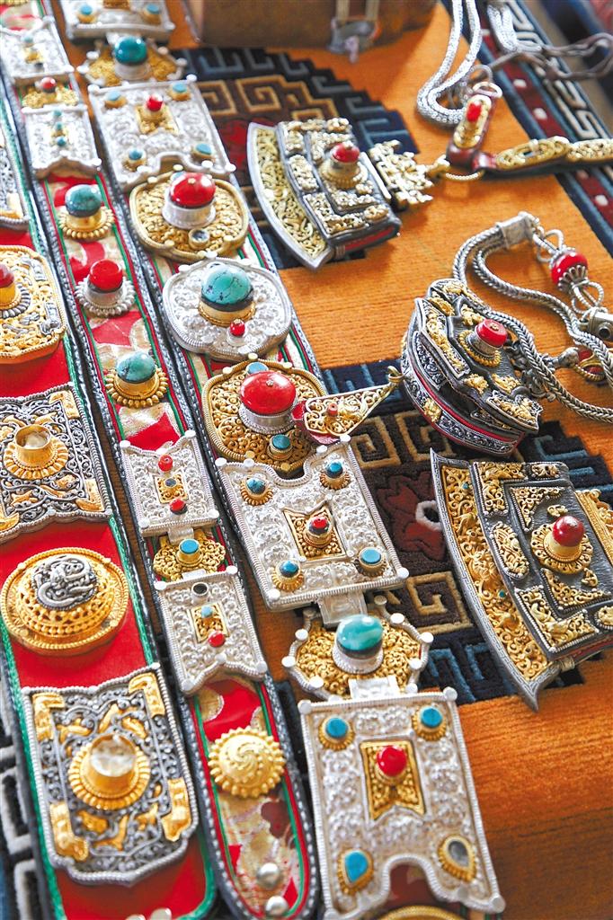 铜像锻造师丁巴曲培打造的民族配饰。 记者 贡秋曲措 摄