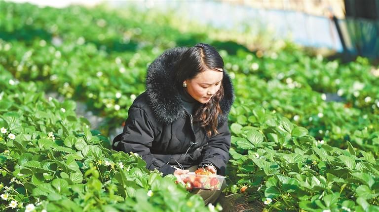 市民在采摘草莓。 记者 王静 益西曲珍 摄