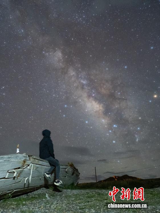 西藏山南羊卓雍错日托寺,因为海拔高、远离城市光污染,是理想的观星之地。近日,海拔4400多米的寺庙夜空清澈,银河清晰可见,璀璨星辰与羊卓雍错相映成趣,吸引游客和摄影爱好者观星拍摄。图为游客在羊卓雍错日托寺附近与银河“打卡”。