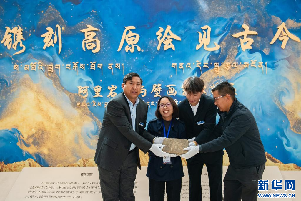 9月26日,“镌刻高原 绘见古今”阿里岩画与壁画艺术特展上移交岩画实物展品现场。新华网 旦增努布摄