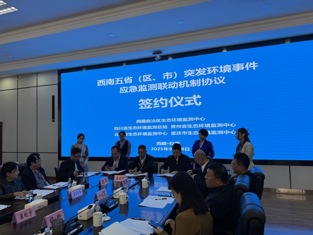 开幕式上,裁判员代表与参赛选手代表分别作了表态发言。随后,会议组织签订了《西南五省(区、市)突发环境事件应急监测联动机制协议》。西藏自治区生态环境监测中心与重庆市、贵州省、四川省、云南省生态环境监测机构的代表共同签署文件,旨在建立起应对跨区域环境风险的协同协作机制。
