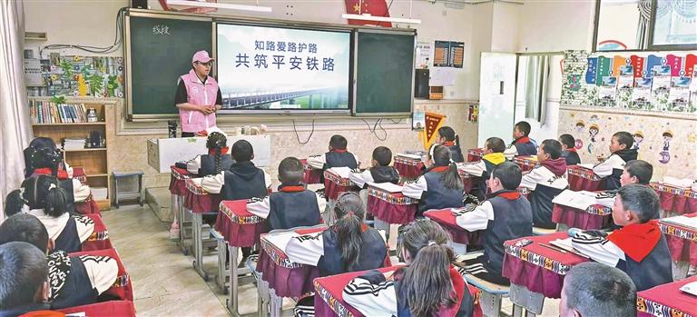 日前,青藏铁路拉萨车务段那曲站团支部在那曲色尼区香茂乡中心小学开展以“爱路护路进校园”为主题的安全宣传活动。