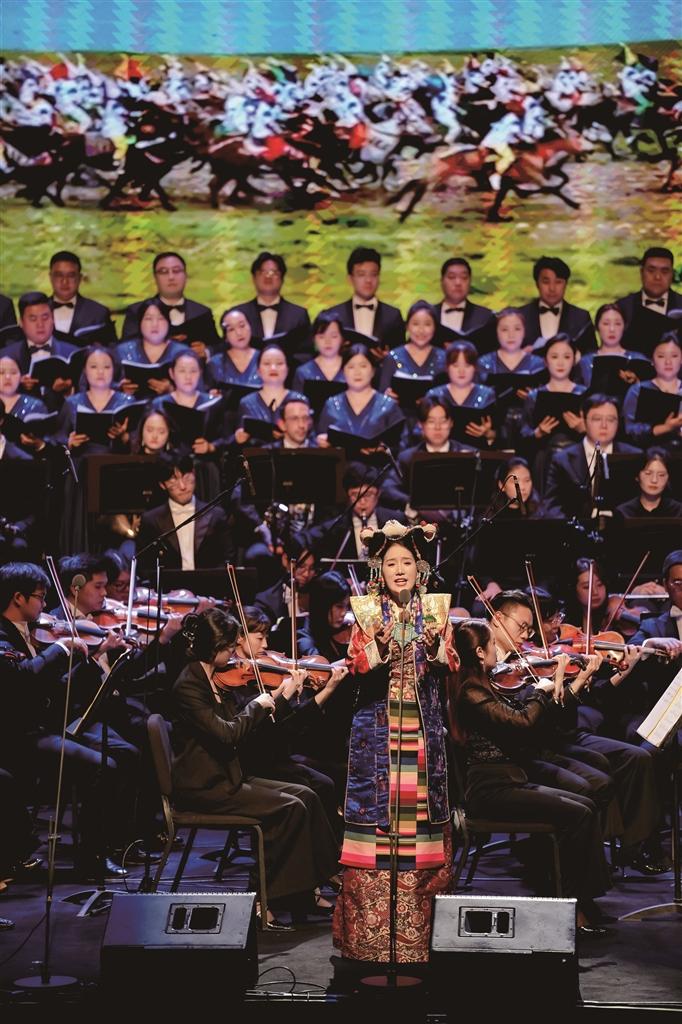 艺术形式的创新融合是本次音乐会的一大亮点。二重唱《茉莉与格桑》优美诠释了民族文化的交流共生;器乐演奏《“飞弦踏春”与“赛马”》则让著名二胡演奏家陈军的激昂琴声与扎念琴演奏员措姆的热情弹奏展开对话,碰撞出令人振奋的艺术火花。从展现拉萨当代生活的电视剧插曲《蓝天上的云》,到描绘乡村振兴新貌的《童话里的格林村》,再到融合原生态山歌与专业唱法、曾为中央代表团献唱的《珠穆朗玛》,一系列新创作品生动展现了传统与现代交织、充满活力的社会主义新西藏。