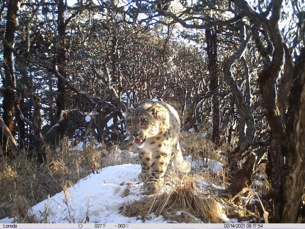 这是2021年2月14日红外相机拍摄到的雪豹。 新华社发(大熊猫国家公园卧龙片区供图)