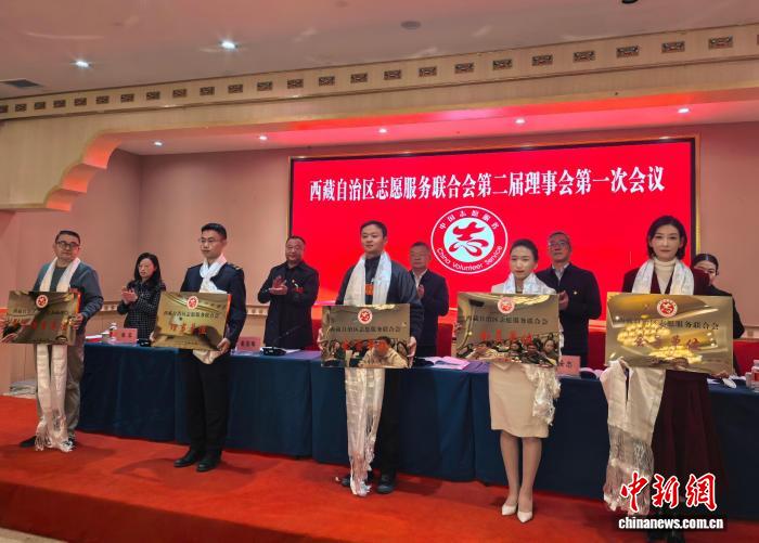 图为西藏自治区志愿服务联合会第二届会员代表大会上会为会员单位授牌仪式现场。次仁罗布 摄