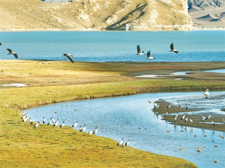 秋日的林周,是冬日惊喜的温柔铺垫。往雅鲁藏布江黑颈鹤国家自然保护区走去,远处念青唐古拉山覆着薄雪,近处水面倒映秋树,几道亮丽的身影忽然从芦苇丛中探出——正是早早迁来的黑颈鹤。护林员顿珠次仁压低声音说:“今年它们来得比往年早几天,现在有30多只,但11月中下旬到次年3月,2000多只黑颈鹤会陆续飞来,卡孜乡的青稞地、江热夏乡的湿地里,到处都有它们踱步、展翅的身影,那才是林周冬天珍贵的景象。”游客屏住呼吸,悄悄举着手机记录,看着黑颈鹤低头啄食的模样,忽然懂了林周的秋是绚烂的序章,冬才是这场自然之约的高潮。
