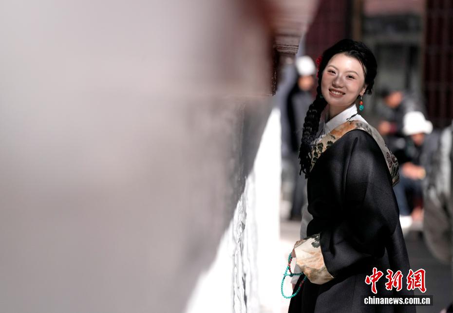 12月24日,游客在拉萨市八廓街拍摄藏服写真。在第八轮“冬游西藏”活动持续推动下,不少游客选择在冬季走进西藏,感受雪域高原的独特魅力。除了免费游览布达拉宫、罗布林卡等景区,体验藏服写真也成为大多数游客行程中的“必选项”。