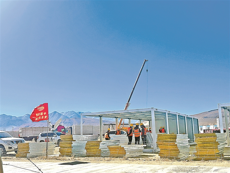 图为2025年1月10日,定日县受灾最严重的长所乡多个安置点正在组织力量快速搭建活动板房。本报记者 次旦央吉 摄