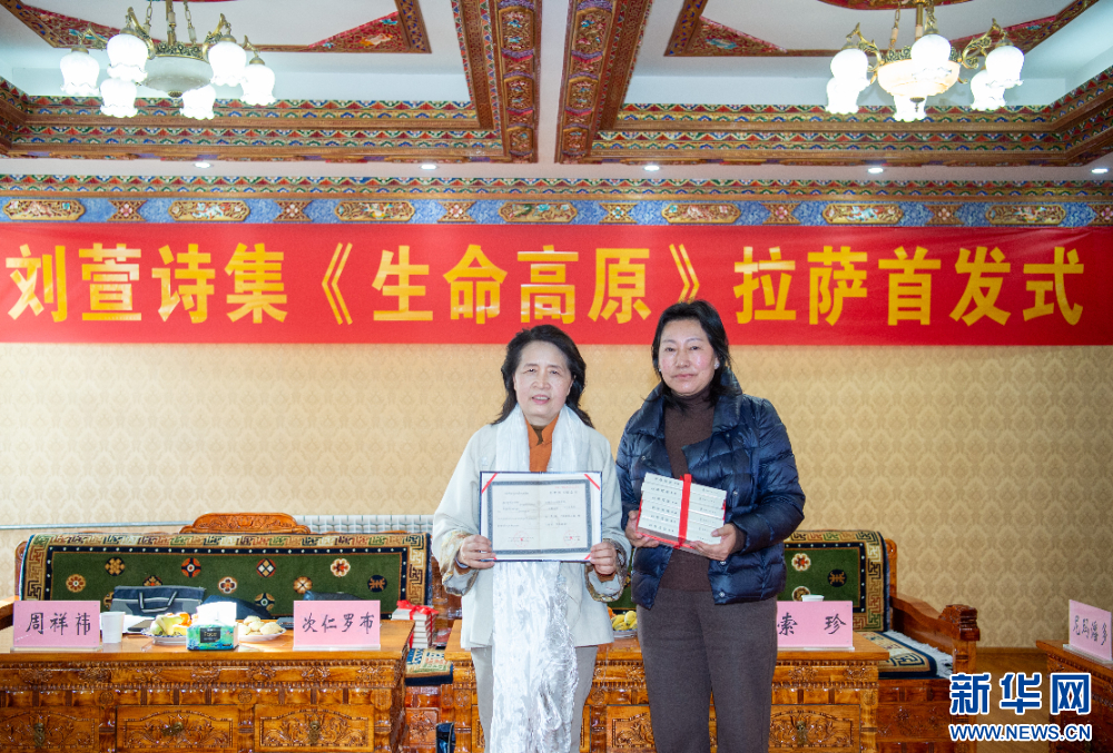 1月15日,刘萱诗集《生命高原》拉萨首发式活动现场。新华网 旦增努布 摄