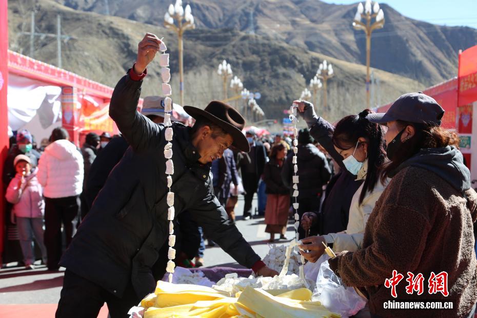 2月2日,西藏自治区山南市琼结县2026年“幸福琼结·优享年货”促消费暨展销活动在朗热大道启幕,为春节、藏历新年预热添彩。本次活动由琼结县投入200万元人民币打造,为期7天,吸引103家商户入驻,其中73家为本地商户,带来150余种特色商品,高原农产、藏式手工艺品、传统年货齐聚现场,尽显藏地年味。活动推出农业银行掌银立减优惠,民众无需领券即可享实惠,现场还设置咨询台与宣传点,切实保障消费安全。图为民众在选购奶渣。