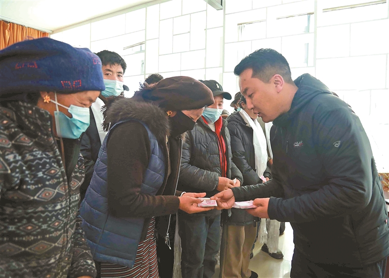 图为工作人员为群众发放慰问金。记者 格桑伦珠 刘琳琳 摄