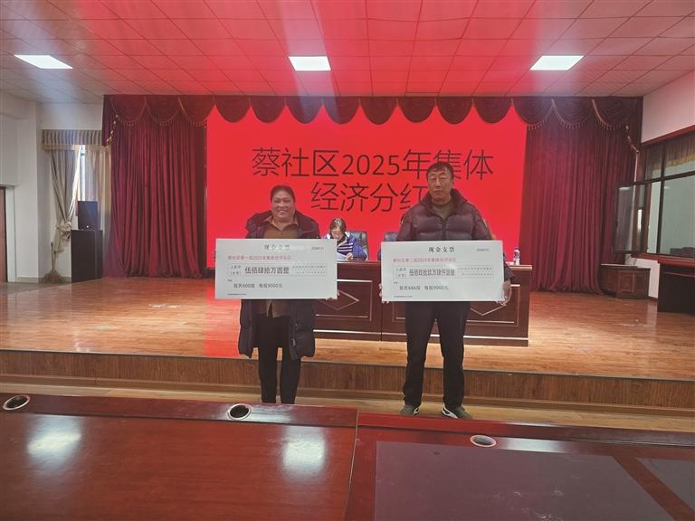 此次分红面向蔡社区一组、二组全体股民,分红标准清晰、发放精准。其中,社区一组共计600股,每股分红金额为9000元,累计发放分红资金540万元;社区二组共计666股,每股同样按照9000元标准发放,累计发放分红资金599.4万元,两组合计发放分红总额达1139.4万元。与2024年分红数据相比,实现了显著增长:每股分红金额从7500元提升至9000元,涨幅达20%;分红总额从949.5万元增长至1139.4万元,增加了189.9万元。这一组组亮眼的数据,直观展现了蔡社区集体经济近年来稳步发展、持续向好的良好态势,也印证了社区产业发展、集体资产管理的扎实成效。