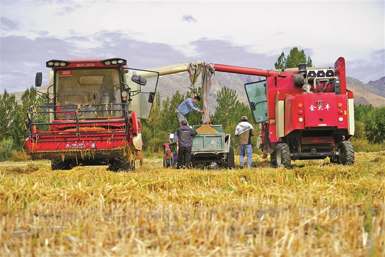 图为乃东区群众正在秋收(资料图片)。