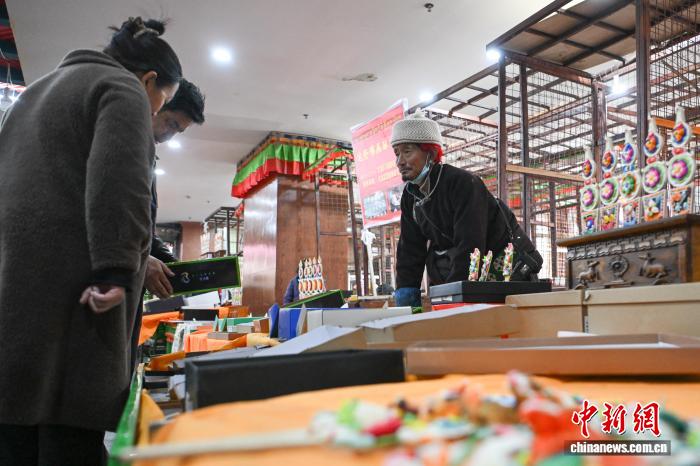 图为市民在八廓商城选购年货酥油花。中新社记者 贡嘎来松 摄