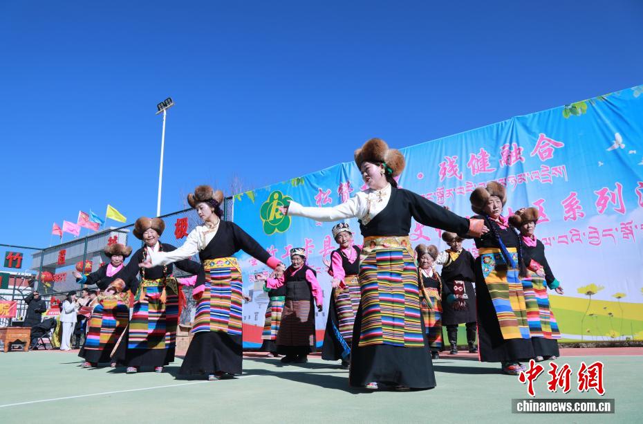 2月6日,春节、藏历新年来临之际,西藏拉萨市墨竹工卡县残疾人联合会在墨竹工卡县残疾人综合服务中心开展“残疾人文化进社区”活动,丰富残疾人精神文化生活,传递社会温情。活动现场张灯结彩,歌舞节目轮番上演,充分展现残疾人积极向上的精神风貌。工作人员为残疾人送上慰问品与双节祝福;义诊区提供健康检测、康复指导服务;手工艺展区陈列着残疾人制作的藏式手工艺品;趣味游戏区开展无障碍互动活动,现场欢声笑语不断。图为文艺演出现场。
